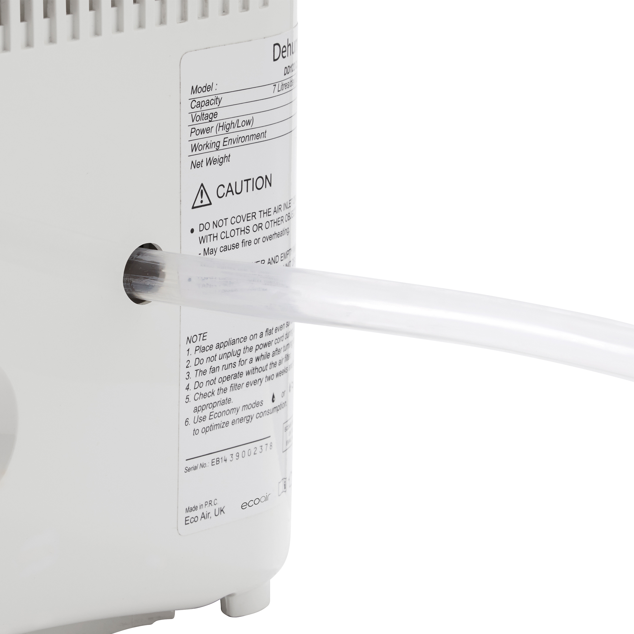 • Ontvochtigingscapaciteit: 7,5 liter per dag (20°C, RH60%)