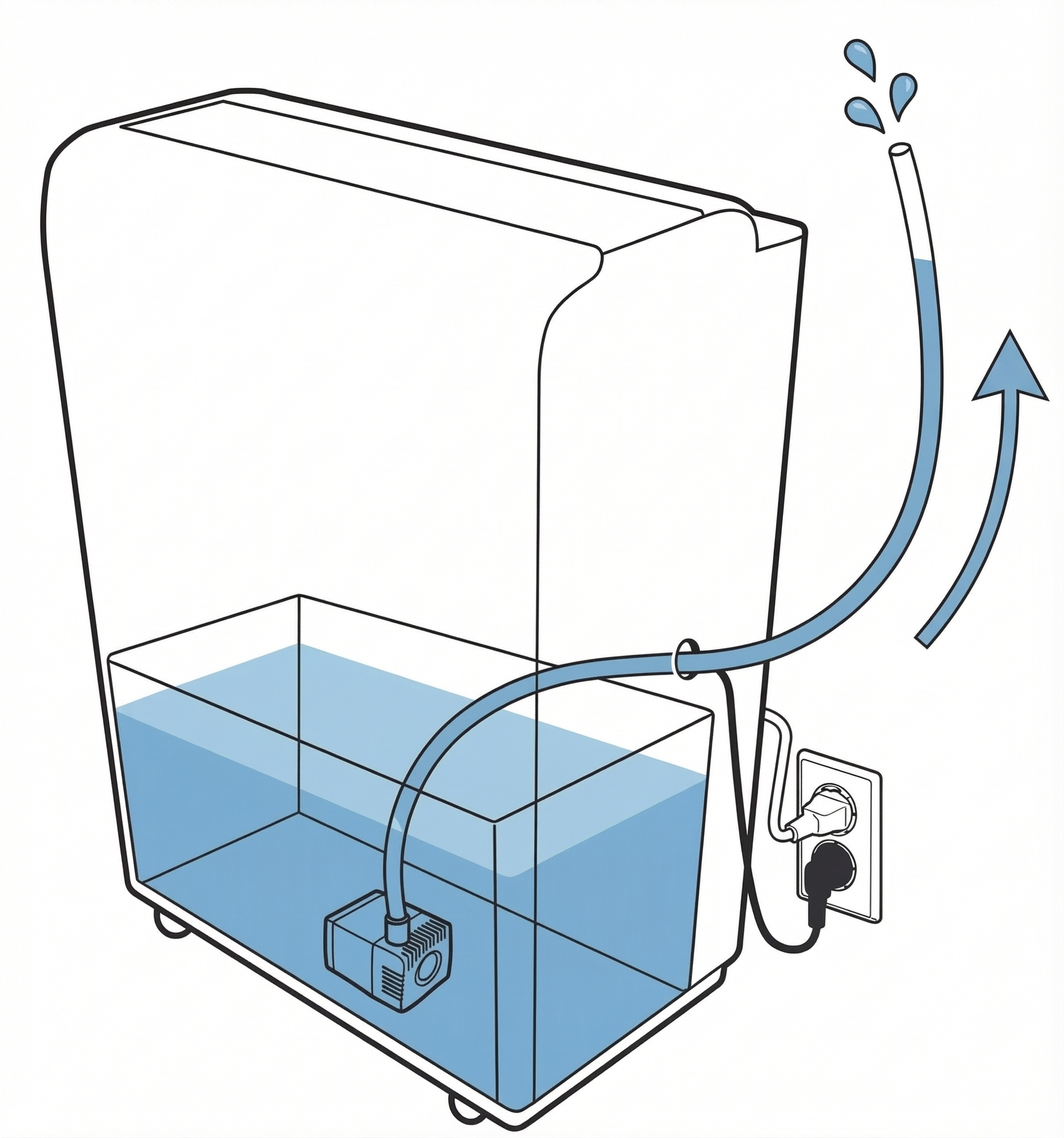 Tijdelijk wordt de Eeese Emil 12L geleverd met een gratis Condenspomp. Als u uw luchtontvochtiger in een ruimte gebruikt waar u de tank niet elke dag kunt legen zorgt deze afvoerpomp dat het condenswater automatisch naar een gootsteen of andere afvoer loopt. Zo blijft de luchtontvochtiger continu werken zonder hem handmatig leeg te hoeven maken. Door de ingebouwde condenswaterpomp is het ook mogelijk om vocht uit een lager gelegen ruimte zoals een kelder omhoog te pompen en af te voeren. De maximale opvoerhoogte bedraagt 3 meter.