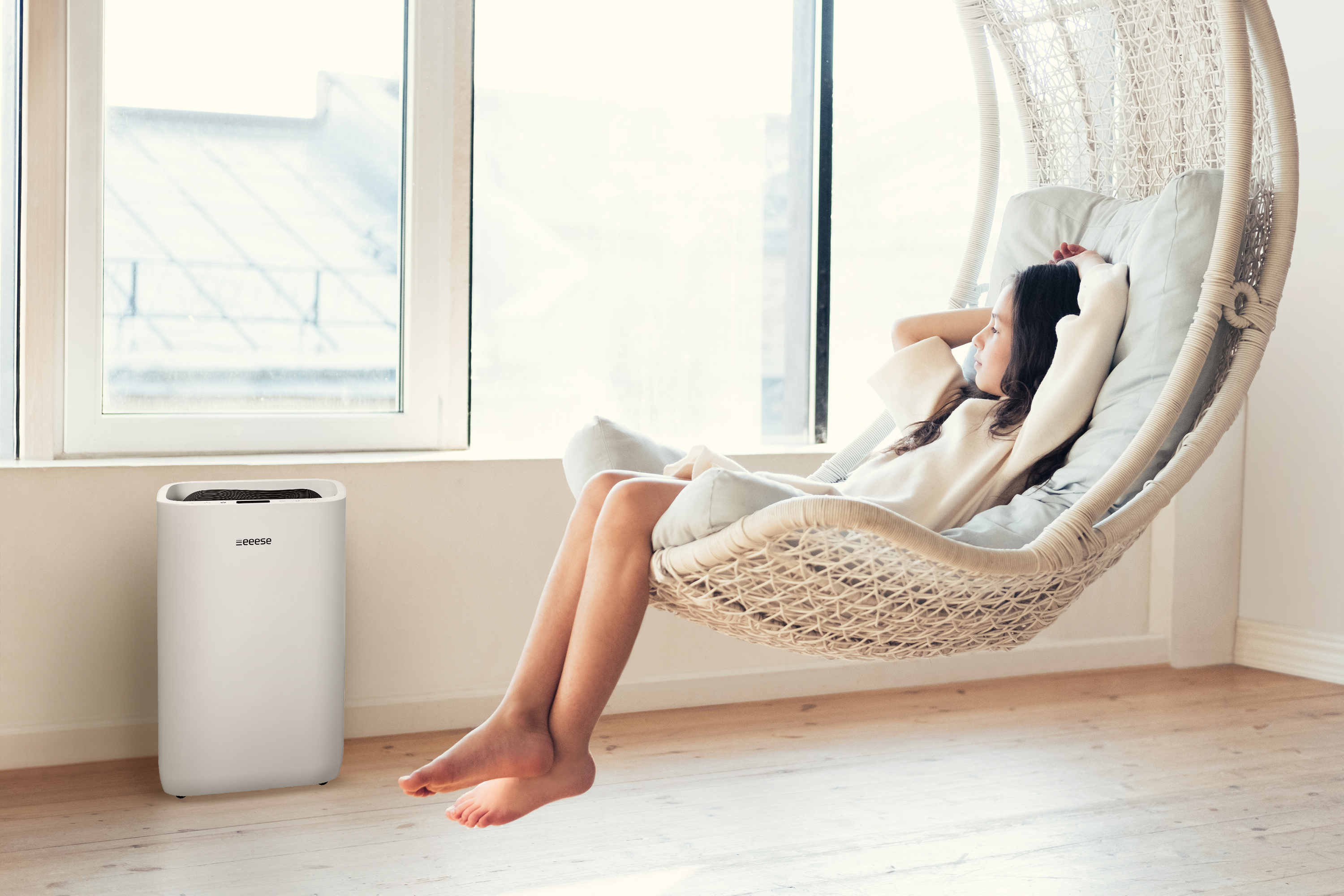 Eeese Hugo 20L met een IPX4 Beschermingsklasse Zeer stil, energiezuinig en een IPX4 beschermingsklasse. Dat zijn kortweg de kenmerken van de Eeese Hugo 20L. Met de IPX4 beschermingsklasse is deze luchtdroger ook toepasbaar in zogenaamde 'natte ruimtes', zoals een badkamer. Voor een 20 liter ontvochtiger en een maximaal verbruik van maar 245 Watt, is deze Eeese Hugo 20L zeer zuinig met energie. Toepasbaar in ruimtes tot maximaal 100 m².