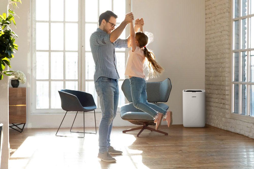 IPX4 Luchtdroger voor natte ruimtes. De Eeese Hugo 25L Luchtdroger heeft met zijn 25 liter een laag stroomverbruik van maar 290 Watt. Voorzien van een zogenaamde 'Timer' functie (eierwekker), waarmee u zelf kunt bepalen hoelang de ontvochtiger moet drogen en wanneer deze afslaat. Handig in gebruik en zo goed te controleren. Er is bij de Eeese Hugo 25L de mogelijkheid aanwezig om een afvoerslang te monteren, zodat u een permanente afvoer kunt creëren. Zo kunt u zonder verder omkijken permanent ontvochtigen en hoeft u de watertank niet te legen. WiFi Bedien de luchtontvochtiger via de telefoon. Deze luchtontvochtiger is voorzien van WiFi, wat het mogelijk maakt om het apparaat via een mobiele telefoon te bedienen. Hij is intelligent, flexibel en innovatief. Deze luchtontvochtiger is compatibel met Google Assistant. Hugo’s kenmerken: Zeer laag geluidsniveau – maar 44 dB(A) Zeer laag energieverbruik – slechts 290 Watt WiFi - compatibel met Google Assistent Fraaie vormgeving IPX4-beschermingsklasse voor bijvoorbeeld badkamer Luchtfilter is uitwasbaar Ergonomische handgrepen – makkelijk verplaatsbaar Kinderslot Schakelt uit bij vol reservoir Timerfunctie Condensslang van 60 cm bij de levering inbegrepen
