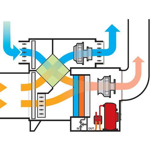 • 'Crossflow' (kruisstroom) warmteterugwinunit met aluminium voorgecoate vinnen