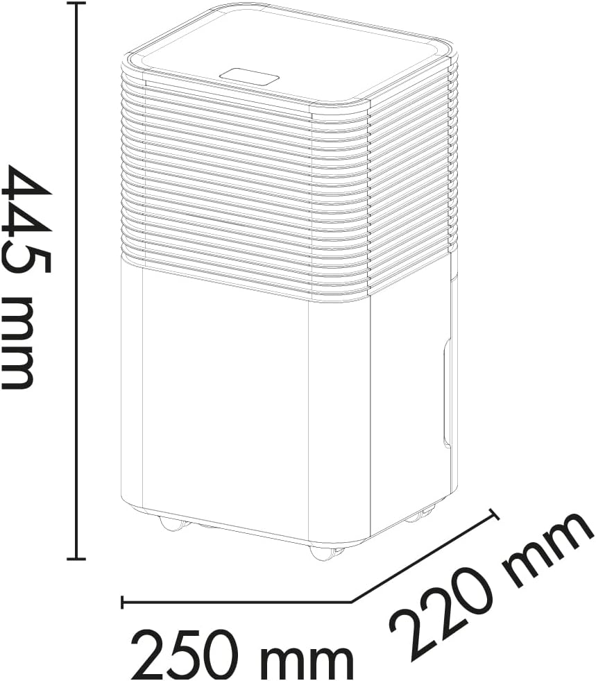 Luchtontvochtiger voor ruimtes tot 40m², de centrale ledstrip en het intelligente display tonen de vochtigheid in de ruimte Soft-touch bedieningspaneel met zeer nauwkeurige led-indicator en hygrostaat met instelbare luchtvochtigheid (30-80%) Uitgerust met 3 modi: automatisch om de werking automatisch te regelen, afhankelijk van de ingestelde temperatuur in vergelijking met de omgevingstemperatuur; LAUNDRY, de eenheid werkt continu, met maximale snelheid om het drogen van de was te bevorderen; slaap, de eenheid werkt bij lage ventilatiesnelheid en het display wordt uitgeschakeld Beschikt over een luchtreinigingsfilter op de aanzuiging, die voor het reinigen kan worden verwijderd en tot lage temperaturen van 5 °C tot 35 °C kan worden gebruikt Uitgerust met in- en uitschakeltimer (1-24 uur), vol alarm en snelkoppeling voor continue condensaatafvoer Het beschikt over een automatisch ontdooisysteem en heeft het natuurlijke koelmiddel zonder invloed op de wereldwijde verwarming