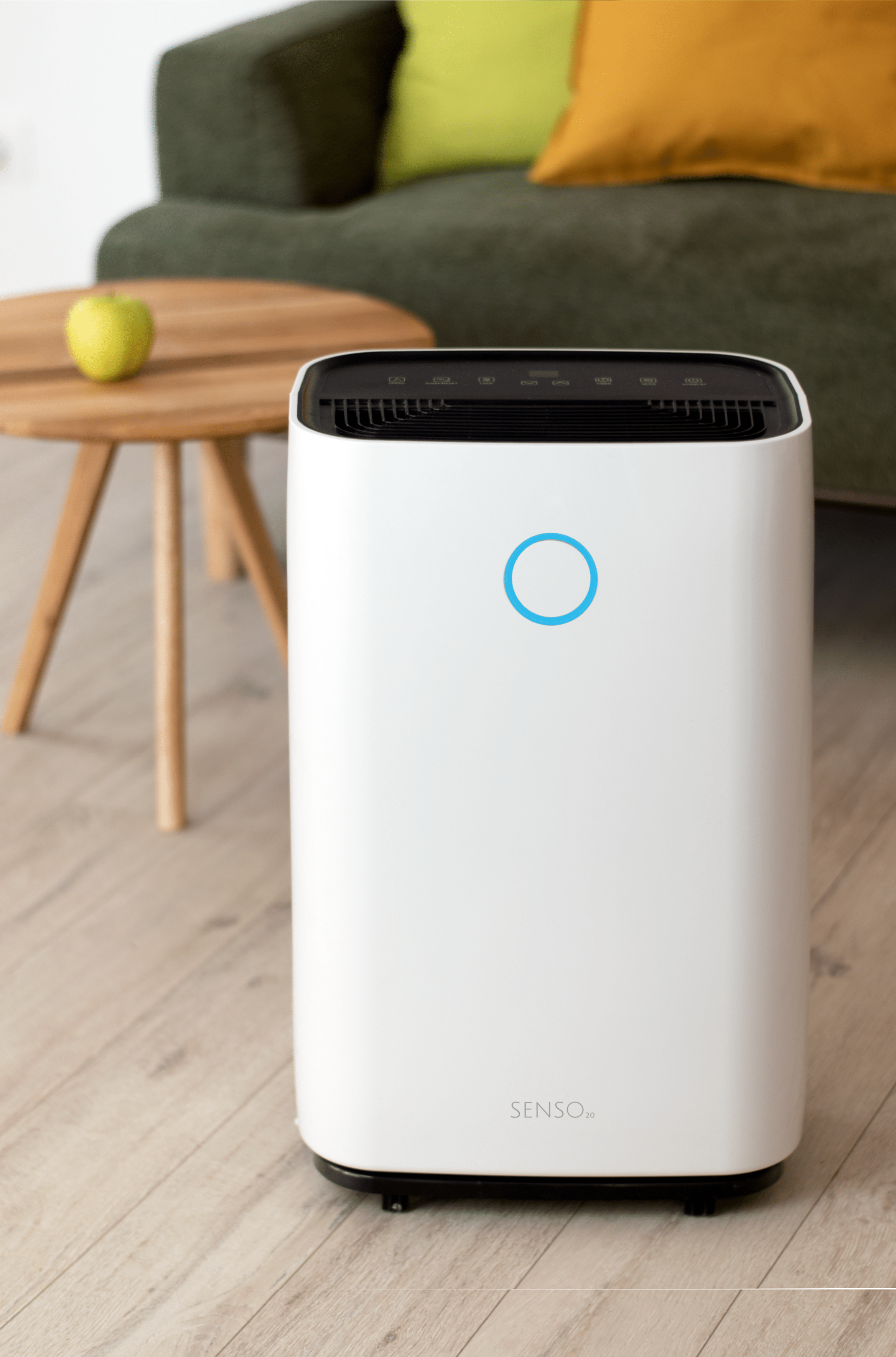 Turbionaire: slim lucht ontvochtigen Turbionaire SENSO 20 is compact, stijlvol en eenvoudig te gebruiken. SENSO 20 is een compacte en krachtige compressortype luchtontvochtiger, met 3-kleuren LED vochtigheidsindicator. 4 liter watertankcapaciteit, digitaal display en elektronische hygrostaat. Hij is perfect voor elke kamer, in uw huis of op kantoor. LED-vochtigheidsniveau-indicator De LED-indicator aan de voorkant, in drie kleuren, informeert u over de luchtvochtigheid in de kamer. De informatieve LED-indicator van Turbionaire SENSO 20 heeft een ronde vorm. De kenmerken van Turbionaire SENSO 20 Verwijdert tot 20 liter water per dag Zeer stil voor deze capaciteit, slechts 45 dB (alleen wanneer de compressor werkt) Wasbaar luchtfilter, zeer eenvoudig te verwijderen en te wassen Automatisch opnieuw opstarten na een stroomstoring Kinderslotfunctie Elektronische hygrostaat Continue afvoeroptie, handig voor intensief gebruik Multidirectionele wielen voor eenvoudig transport
